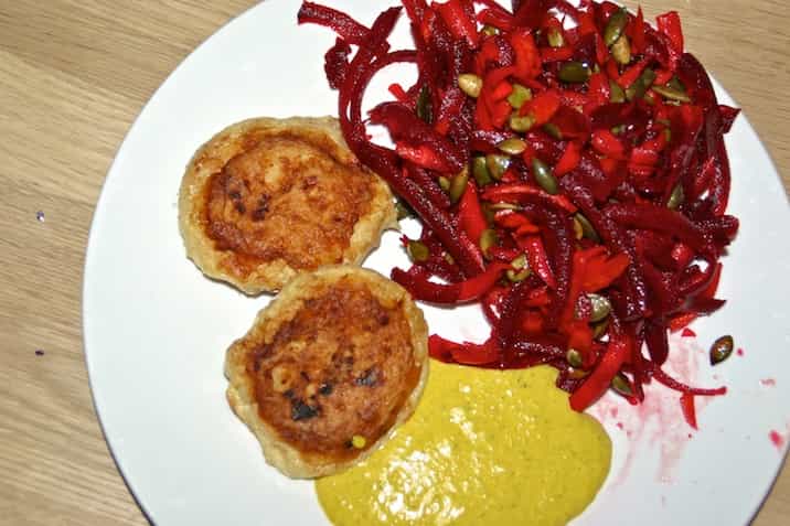 Hver gang jeg spiser en virkeligt god fiskeret, tænker jeg: Åh, de stakler som påstår at de ikke kan lide fisk. Og umiddelbart derefter tænker jeg så, at det da egentligt er noget fis at sige, at man ikke kan lide fisk, punktum. Fisk er jo en milliard forskellige ting. Der er vitterligt en verden til forskel mellem fx disse fiskefrikadeller og kogt torsk (bvadr). Eller en laksefilet stegt så perfekt at man nærmest kan dele den i lækre og fedmefyldte flager med øjenvipperne og en laksefilet så tør og trist, at den nærmest er grå. At sige at man ikke kan lide fisk er vel ligesom at sige, at man ikke kan lide grøntsager. (eller kød, ahem, godt jeg da er blevet lidt klogere) Så skal vi ikke bare aftale, at I alle laver disse frikadeller, uanset set om I er vilde med fisk eller ej? Og lav gerne remouladesaucen og rødbederåkosten også, men det er ikke et krav. Men I vil i hvert fald ikke fortryde det, hvis I gør det!