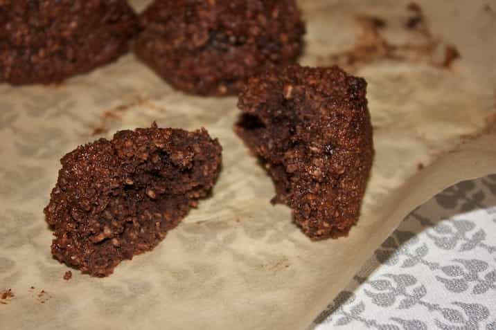 Men spøg til side, så blev disse “kransekagekakaokokosmakronhybrider” (læs: kransekage + kakao + kokosmakron – hybrider) faktisk ultralækre. De udsprang af en lovning om kagebagning fra min side af, som jeg dog havde formået lidt at sved ud igen, så jeg pludseligt stod aftenen før og skulle finde på noget godt ud fra mine køkkenskabes indhold. Faktisk har jeg nogle rimeligt veludstyrede skabe, men ikke desto mindre kan jeg nogen gange godt komme til kort, hvis jeg ikke har haft tid til at overveje og genoverveje, inden jeg tager fat på et projekt. Dette var i hvert fald tilfældet her, så til trods for et sandt overflødighedshorn af bageingredienser, var min fantasi ingen steder at finde. Men jeg havde længe haft lyst til at lave kokosmakroner, så det var egentligt min oprindelige plan – lige indtil jeg opdagede, at jeg ikke havde nok kokosmel. Så en anden plan om at forsøge mig med hjemmelavet marcipan (som endnu ikke er blevet til noget, men måske det kommer her i juledagene?!) blev min redning, og disse hybrider var født. Og de smager faktisk netop som en blanding af kokosmakroner og kransekagestykker – med et ekstra twist af lækker chokolade/kakao-smag – ikke dårligt vel?
