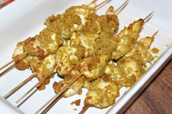 - Sæt kyllingen på spyd - eller læg det blot i et fad.