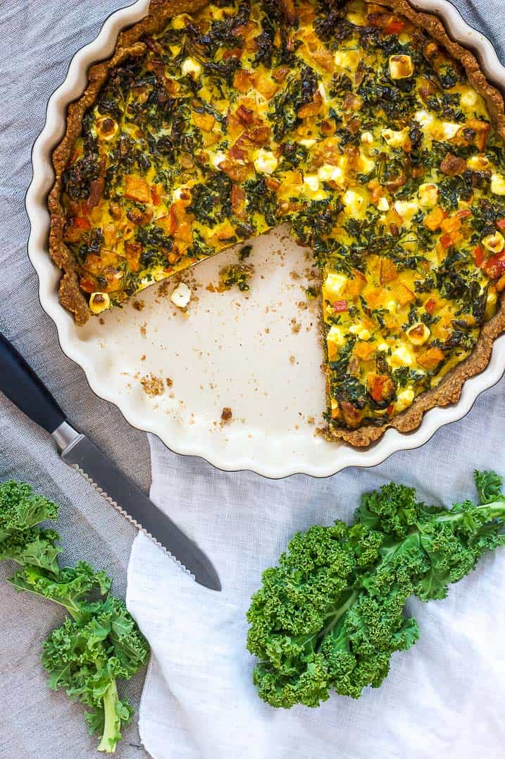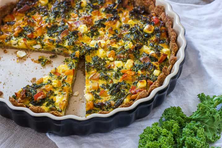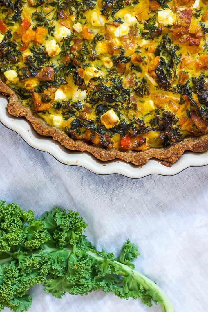 Har du lyst til at prøve en tærte med et lidt andet fyld en den klassiske spinat- og laksekombination, kan jeg klart anbefale denne. Og uden for sæson kan du fx bruge sød kartoffel og spinat i stedet for græskar og grønkål, så den burde kunne fungere hele året.