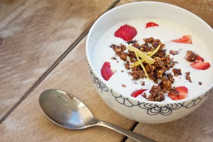 Det er en universelt anerkendt sandhed, at enhver sommerdag kun bliver bedre med tilførelsen af koldskål. Og det gælder naturligvist uanset, om man spiser den i en LCHF-udgave eller i den mere traditionelle. Begge smager fortræffeligt – men dog bedst med noget knas på, hvis I spørger mig. Jeg kan egentligt som sådan godt lide kammerjunker – men dels er de jo hverken LCHF eller glutenfri eller noget som helst – og dels er det jo ligesom at spise småkager til aftensmad. Bevares, jeg er da bestemt ikke for fin til at spise kage til aftensmad, men hvis det skal være, skal det altså også være god kage, ikke bare sådan nogle halvbløde kiks gennemvædet af diverse mælkeprodukter, ellers tak! Jeg har før prøvet at lave mine egne kammerjunker og de var da for så vidt ganske fine – men, hvis jeg skal være ærlig, egentligt ikke besværet værd, i forhold til hvor meget nemmere og hurtigere sådan en gang nøddeknas her – og hvor godt det smager til sammenligning!