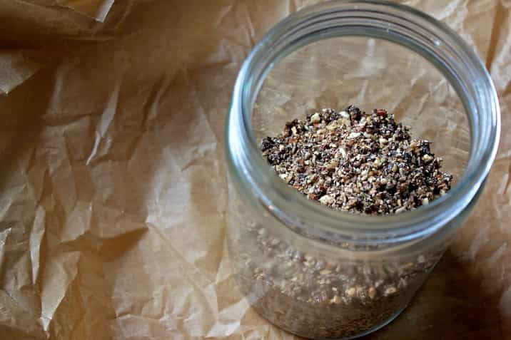 - Hak det hele sammen med chiafrø, sukrin, vaniljepulver og chokolade i en foodprocessor, til det er så findelt, som du vil have det.